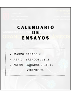 Autorizo de acuerdo con lo que establece la ley 1/1982 de 5 de mayo sobre el derecho al honor, a la intimidad personal y familiar y a la propia imagen y doy mi consentimiento explícito para poder utilizar las imágenes captadas en el entorno y las acciones de la Asociación Coral San Sebastián de los Reyes